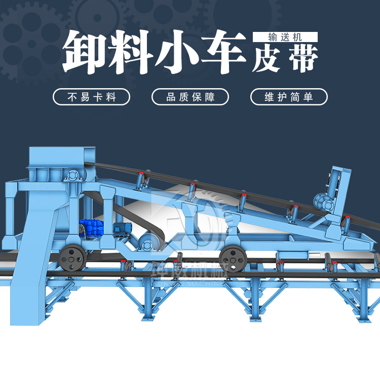 皮帶輸送機(jī)卸料小車在部件組成上和皮帶輸送機(jī)沒有太大差異。都是包含滾筒,輸送帶以及托輥等部分組成。主要在于可以移動(dòng)的軌道和卸料行走車,屬于皮帶輸送機(jī)的配套設(shè)備。 皮帶